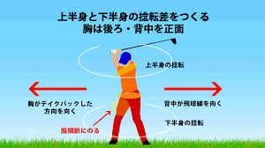 捻転とは体を捻じり、その戻ろうとする力をクラブに伝えるというもの。