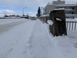 雪が降り始めてから見ていたのですが、橋の除雪がされていないため通学する子供たちや地域の方々が車道を歩く姿が多くみられました。その状況は・・・非常に危険。