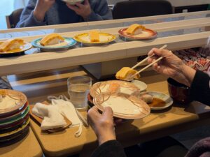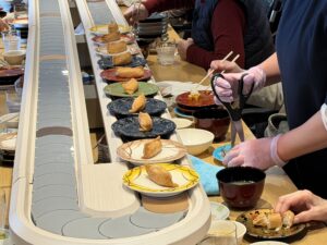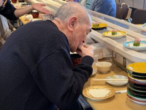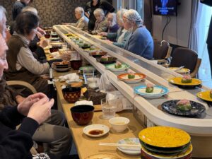 ↑皆さん若い時に行って以来の回転寿司。懐かしむ利用者さんもたくさんいました。
