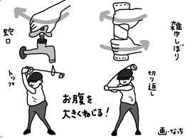 力も一般的な男性よりあるほう・・・だと思う(握力右80㎏・左70㎏。なんでか知らんが左は弦楽器のせいと思われる)その力の使い方がうまく伝わるようになってきたんでしょうね。ゴルフは体の捻転ですよ捻転。