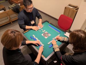 たまちの運動場のスタッフが、麻雀の講習を受けているんです。