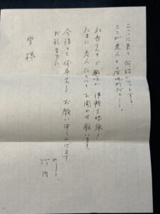 利用者さんから私宛に直筆のお手紙を頂戴しました。いやぁ・・・ほんとうにありがとうございます。