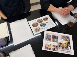 チラシに載せる内容の検討、作成、配布の仕方・・・チーム一丸となって営業活動を進めていきます!