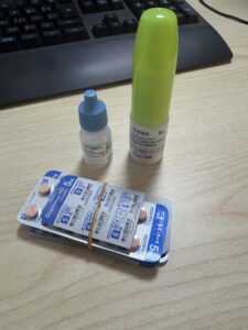↑飲み薬、点眼、点鼻薬をいただいた。