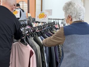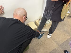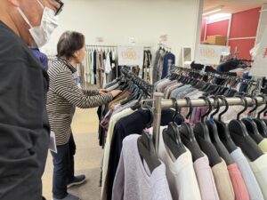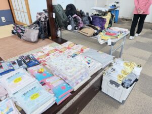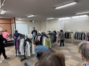 ↑今回衣料販売を実施して頂いた「イチカグループ」のスタッフさんが衣類の説明をしてくれます。